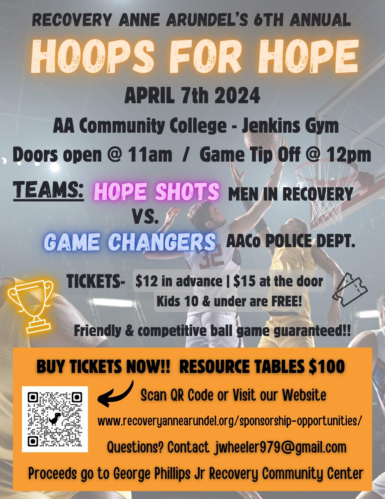 AACC - Jenkins Gymnasium Ring Road, Arnold, MD, United StatesDoors Open at 11 Tip-off 12:30 Tickets - $12 ($15 at the door) Kids 10 and under free Tables will be $100, and include 2 tickets for admission